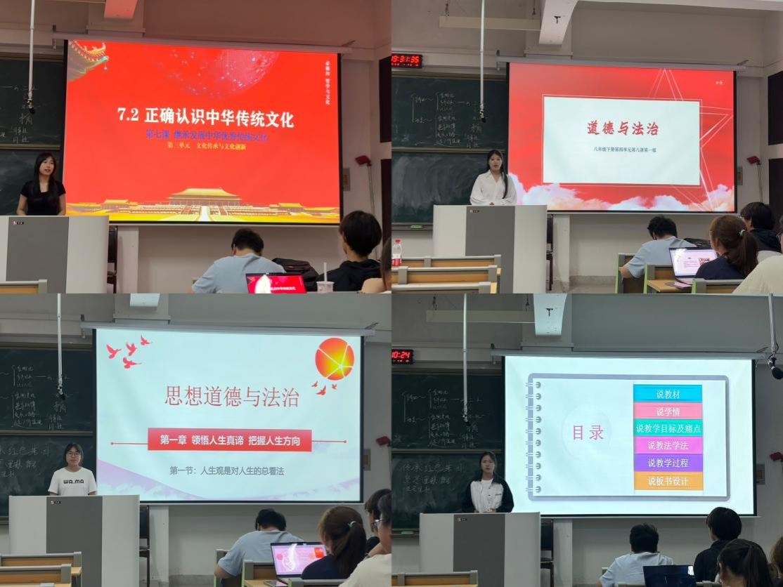 在书法展示环节,选手们钢笔字书写规范流畅,毛笔字挥洒自如,粉笔字刚劲有力,展现出扎实的书写基本功。说课环节中,选手们精心设计教学方案,从教学目标的设定到教学过程的组织,逻辑清晰、重点突出。模拟教学环节选手们模拟真实课堂场景,与