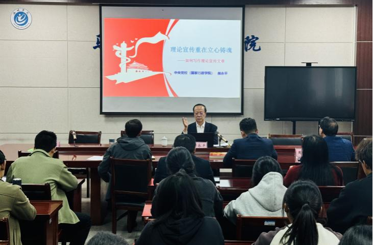 郝永平教授作了题为《理论宣传重在立心铸魂——如何写作理论宣传文章》的专题讲座。郝教授从“准确理解习近平总书记关于加强宣传思想文化工作的重要论述”“通过长期积累与深入思考来精准选题”“精心布局:在挖掘思想深度与论述新意上下功夫”以及“精细把控:充分体现认真态度和严格要求”四个方面,对理论宣传文章的撰写进行了深入的分析和详尽的经验分享。