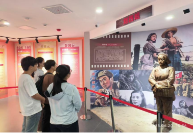 实践团首站来到青阳烈士纪念馆。这座2025年新落成的场馆以“青山处处埋忠骨”为主题,通过序厅浮雕墙、四大主题展厅及尾厅献花区,完整呈现了土地革命、抗日战争、解放战争及社会主义建设时期青阳县314位烈士的英勇事迹。在“土地革命时期”展厅,宁坤山、石生根等烈士的连环画与油画前,团队成员驻足凝视——石生根作为首任青阳县委书记,被捕后面对严刑拷问仍坚守信仰,最终英勇就义;宁坤山带领“穷人团”开展反筑路斗争,牺牲时年仅28岁。这些烈士平均年龄不到25岁,却用生命点燃了革命的星火。