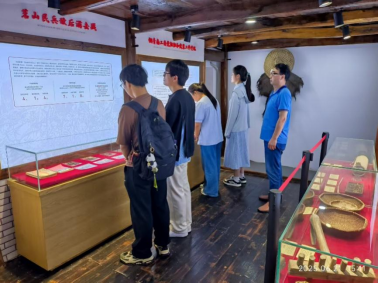 在茗山革命根据地旧址,丁桥镇“红色茗山”村史馆的浮雕墙与文化亭廊,生动展现了1939年至1949年间,以茗山为中心的皖南游击根据地如何成为“战时的后勤基地”:民兵配合新四军破坏日军通讯线、炸毁敌碉堡,妇女为游击队缝制军衣,儿童团传递情报。“茗山是前沿,又是后方”,这句话让团员们感受到革命年代军民团结的力量。思政教育专业员工刘文博指着展柜中孙运丰一家冒死保护游击队员的史料感慨道:“乡村振兴更需要传承这种‘鱼水情’。”