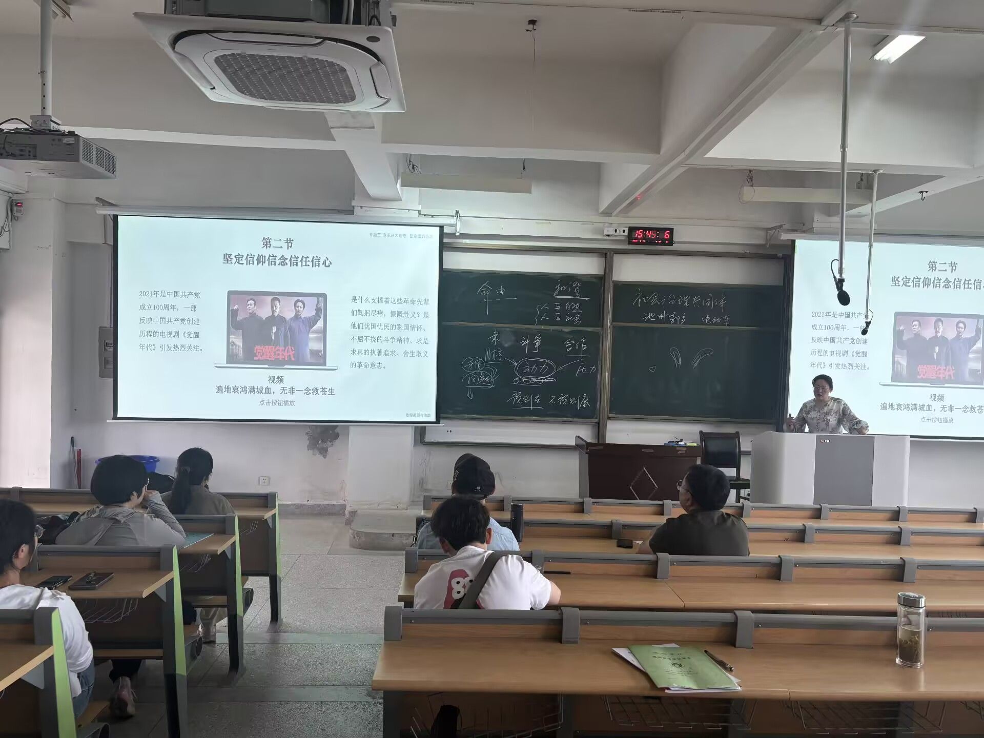 活动中,思想道德与法治教研室潘蕾老师围绕第二章《追求远大理想 坚定崇高信念》展开讲解。她通过讲述邓稼先等老一辈科学家科研报国的事迹与时代楷模精神,深刻阐释了理想信念的内涵,以及理想信念对个人成长与国家发展的重要意义。通过相关的视频展示,激励广大青年员工在今后的学习生活中坚定信念、勇担使命,努力成长为有理想、敢担当的新时代青年。